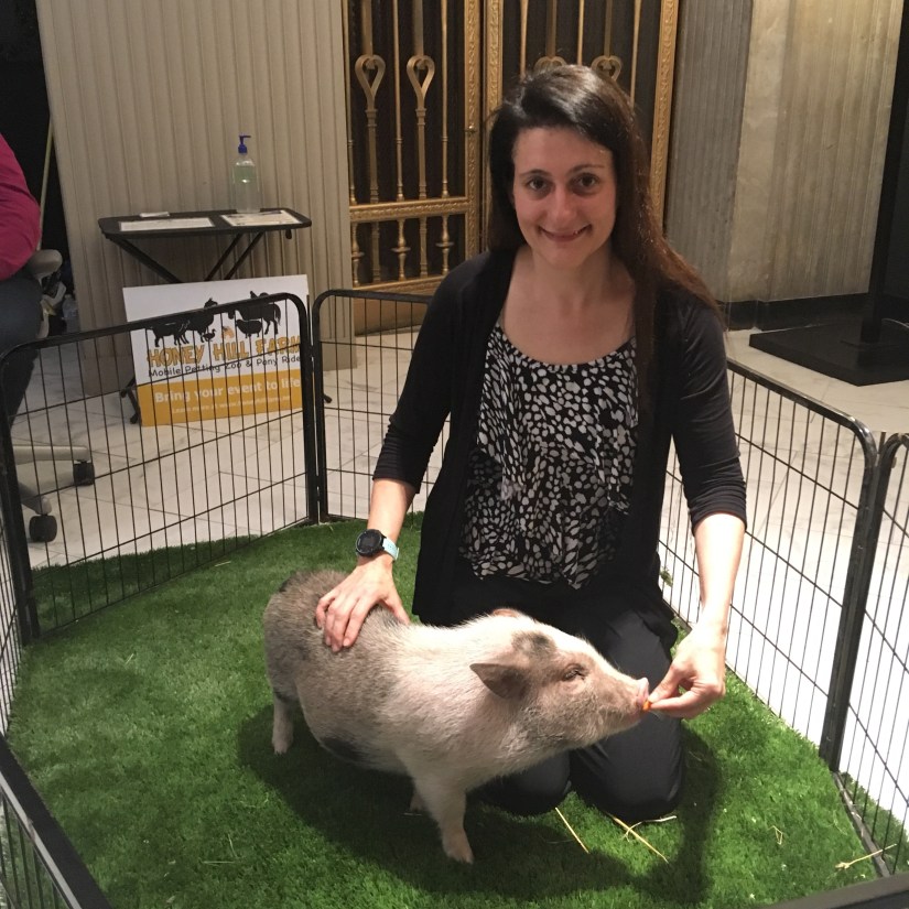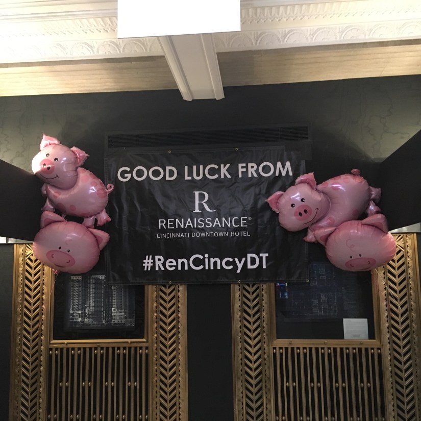 We stayed at the Renaissance hotel Saturday night, within walking distance to the Marathon Starting line. The hotel was decked out with Pig balloons, Obi the Pig welcomed us and posed for pre-race pictures, and we received a gift of pig shaped chocolates. The hotel staff were extremely kind and helpful, taking our pictures, and offering late checkout for Marathon runners.