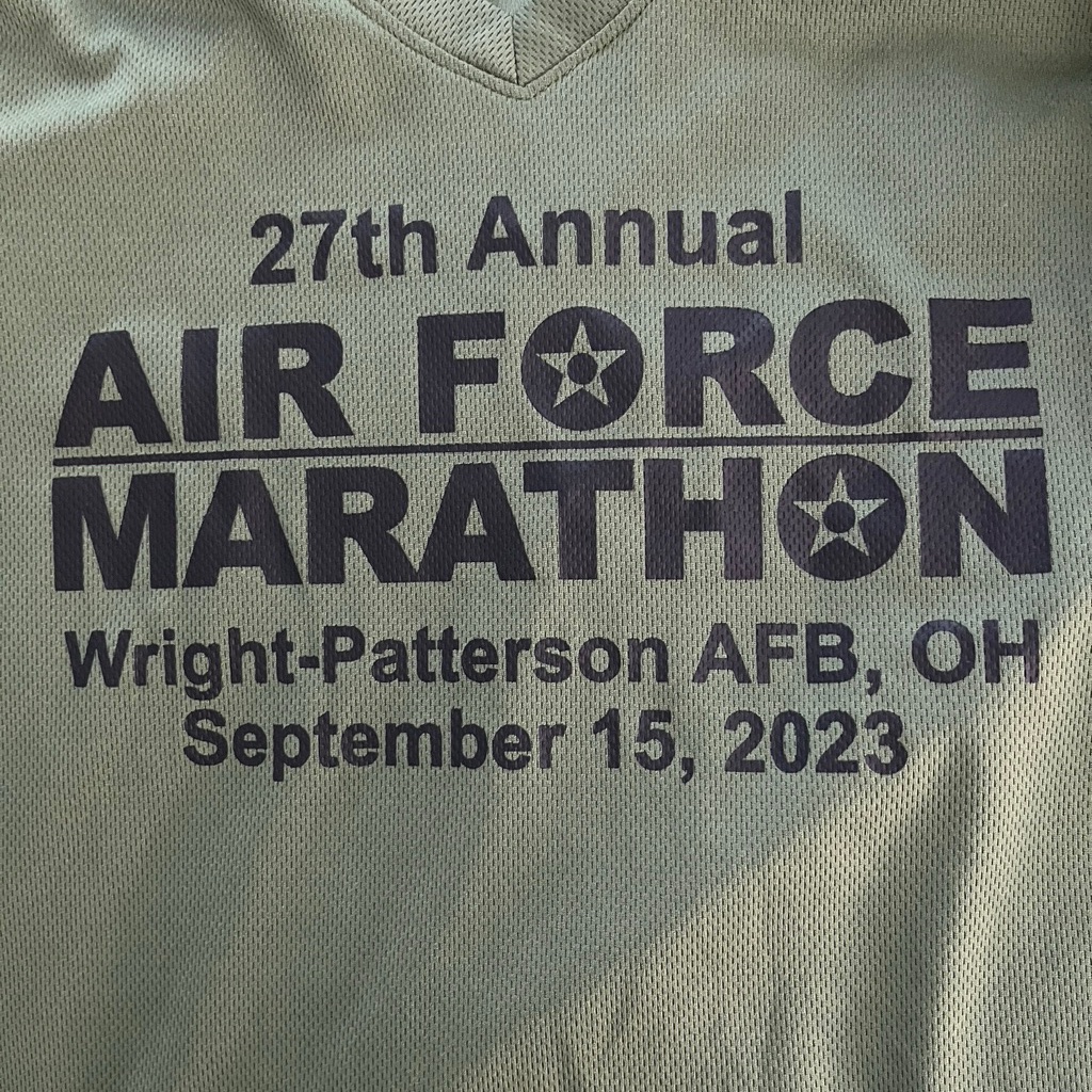 #7 Air Force 5k 2023. The Air Force Marathon was my very first Marathon. The past two years I have run the 5k. This shirt is my favorite long sleeve shirt and I have already worn it a lot. A simple design is nice and getting a long sleeve tech shirt at a 5K is even better. The color is “flight suit green”, or olive, even though it looks grey in this picture. I love this shirt!