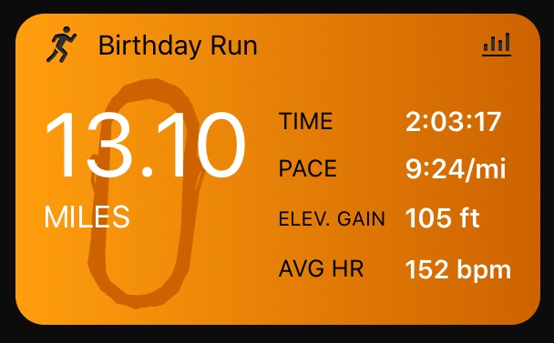 I ran the MTA Virtual Half Marathon on my birthday, covering 13.1 miles on the track, to support one of my favorite podcasts, Marathon Training Academy.