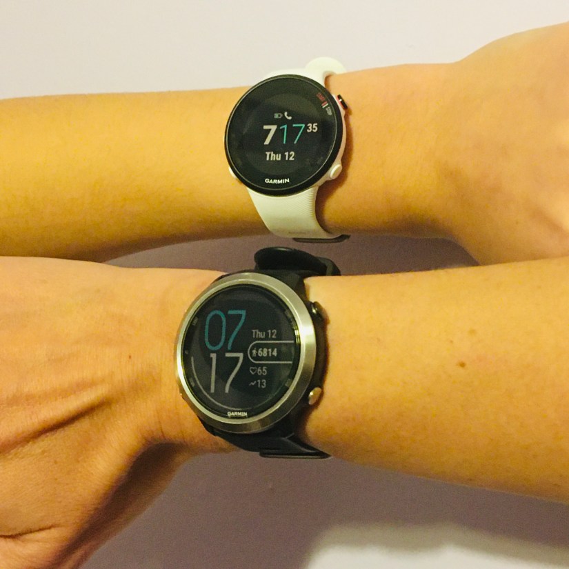 I currently wear the Garmin 645 model, but the Garmin 45 is such an amazing and cute watch I have considered downsizing to the sleeker smaller 40mm watch instead.