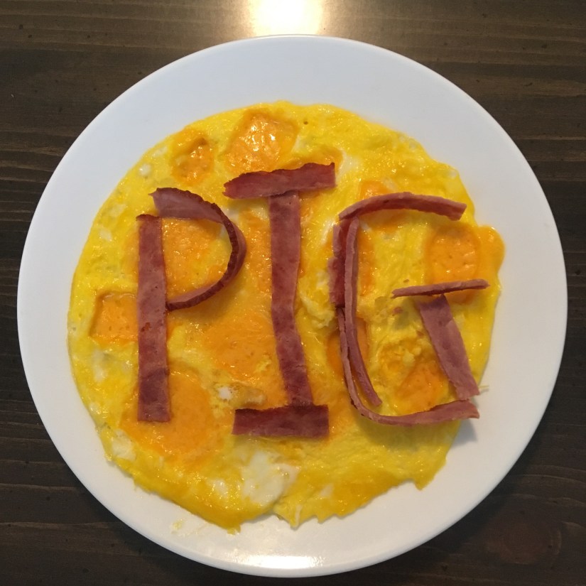 To celebrate another Pig PR I made this Pig inspired Omelet. Don’t tell anyone, but I actually used turkey bacon.