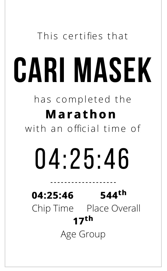 At the first mile mark, I realized I forgot to start my watch. From that point on I had no idea how fast I was running, which may have helped me to run my own race without focusing on a PR.